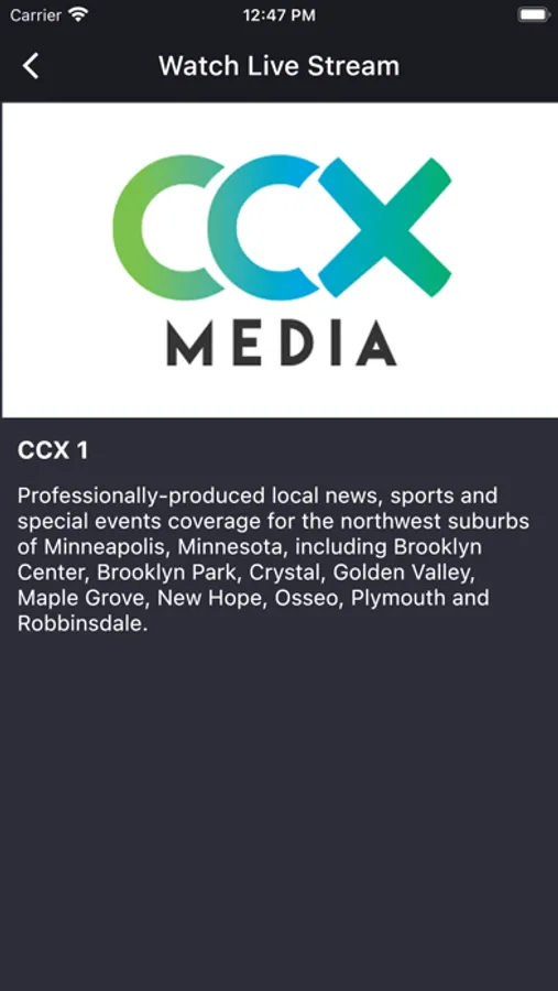 CCX Media is a service of Northwest Suburbs Cable Communications Commission serving the northwest suburbs of Minneapolis, Minnesota, including Brooklyn Center, Brooklyn Park, Crystal, Golden Valley, Maple Grove, New Hope, Osseo, Plymouth and Robbinsdale.