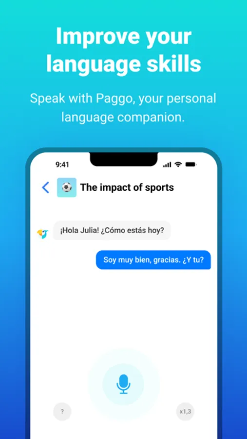 Improve your language skills and speaking confidence with Papagaio, your personal language companion.