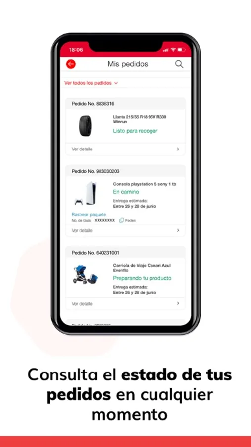 * Ver el estado de tus pedidos en tiempo real y hacer seguimiento a tu envío.