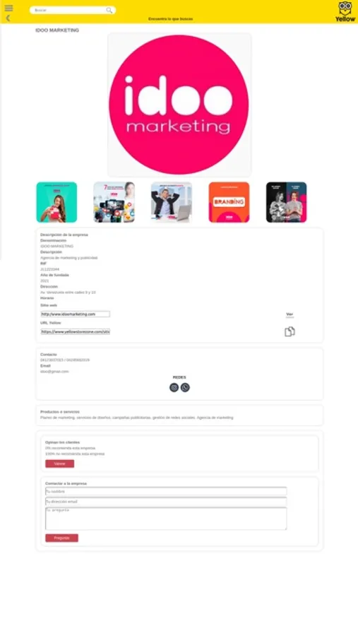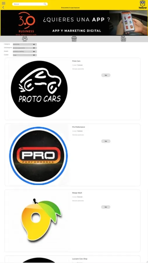Es una app para para búsqueda de empresas de productos o servicios. Las empresas se pueden registrar y promocionar sus productos o servicios usando imágenes y colocando la descripción de los servicios de su organización. Los usuarios de la app buscan los servicios de su interés.