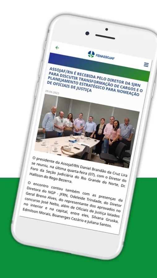 Aplicativo oficial da Fenassojaf - Associação Nacional dos Oficiais de Justiça Avaliadores Federais. Permite aos usuários acessar eventos, votações, convênios, notícias, etc.