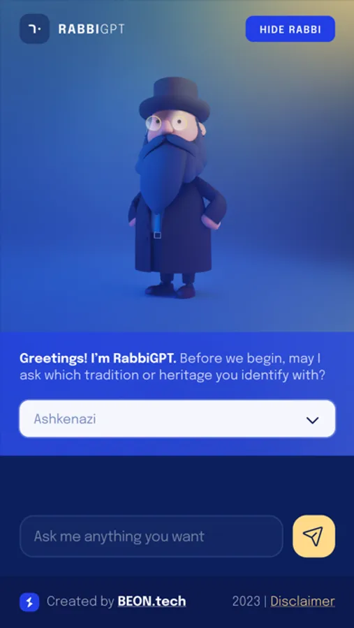 • Customizable Experience - Personalize your RabbiGPT journey by tailoring the insights to your specific tradition.