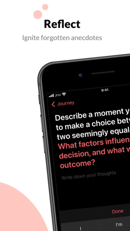 Capture the essence of your life's journey with Jrni, taking you on a nostalgic exploration of your cherished memories. Unveil the power of storytelling as you relive remarkable moments from your past, one memory at a time. With 100 carefully crafted prompts, each representing a unique chapter of your life, Jrni becomes your trusted companion in unlocking the treasure trove of your personal experiences. Take a trip down memory lane and discover what makes you, you.