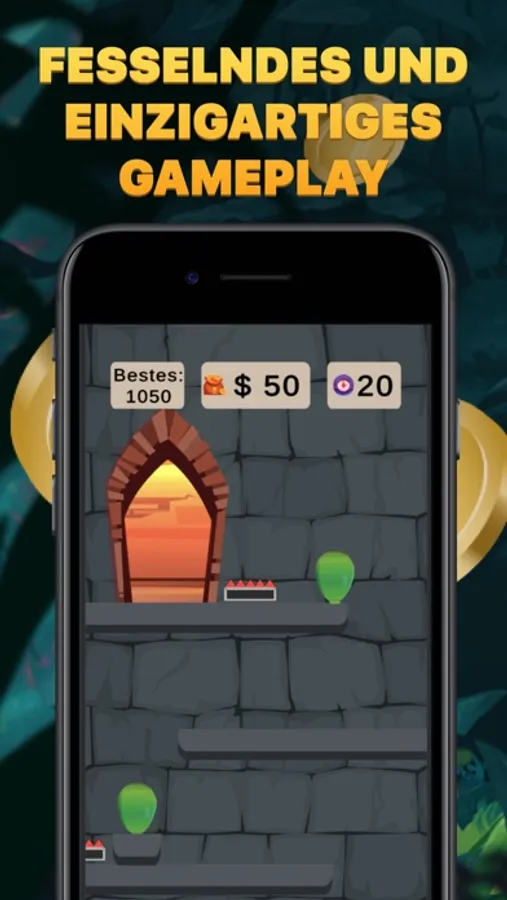 Wir laden Sie zu einer langen und spannenden Reise innerhalb der Mauern einer alten Burg ein, bei der Sie eine Art antike Treppe - Plattformen - überwinden und verstreute Schätze einsammeln müssen