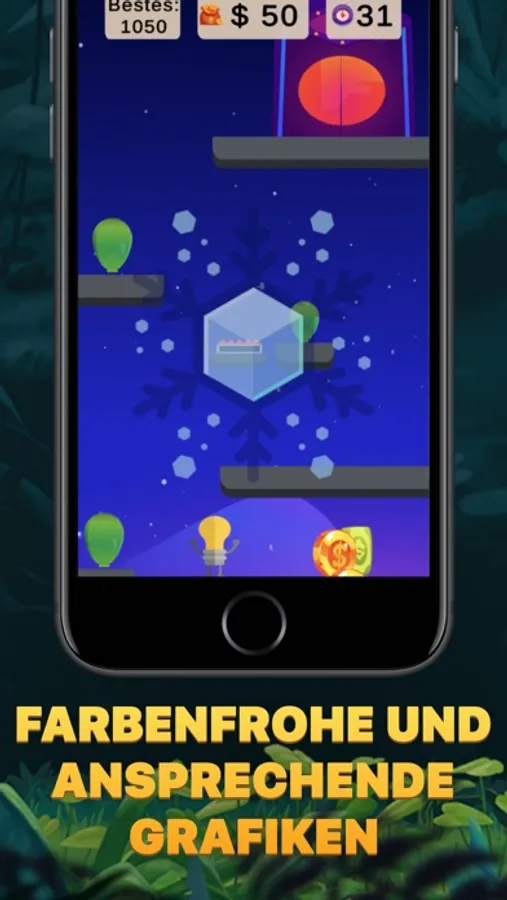 Deine Spielfigur ist ein Ball, den du steuern kannst, indem du auf die linke und rechte Seite des Bildschirms tippst