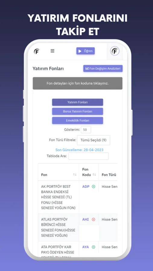 "Fonlar" bölümü ise yatırımcıların fonlar hakkında daha detaylı bilgi edinmelerini sağlar. Fon detayları, fon karşılaştırma, fon doluluk oranları, fon değişim gibi birçok özellik sayesinde yatırımcılar, kendileri için en uygun fonu seçebilirler.