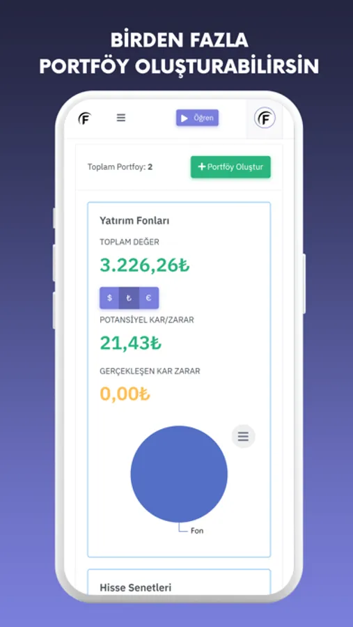 Anlıkfon.com, borsa ve fon yatırımcıları için özel olarak tasarlanmış bir platformdur. Anlıkfon.com üzerinden hisse, fon, döviz, emtia, emlak ve kripto para gibi yatırım türlerini portföylerinize ekleyerek, kar/zarar analizi yapabilir ve portföylerinizi yönetebilirsiniz.