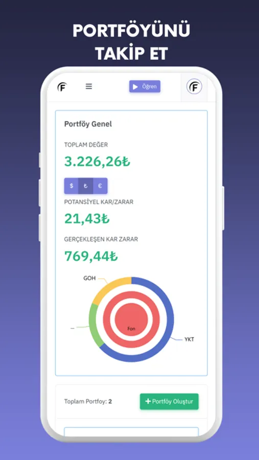 Anlıkfon.com, kullanıcıların yatırımlarını en doğru şekilde yönetmelerine olanak sağlar. "Portföyüm" bölümünde tüm yatırım araçlarınızı tek bir yerde yönetebilirsiniz. Ayrıca portföyünüze eklediğiniz yatırım araçlarının değişimlerini takip edebilir ve kar/zarar analizleri yapabilirsiniz.