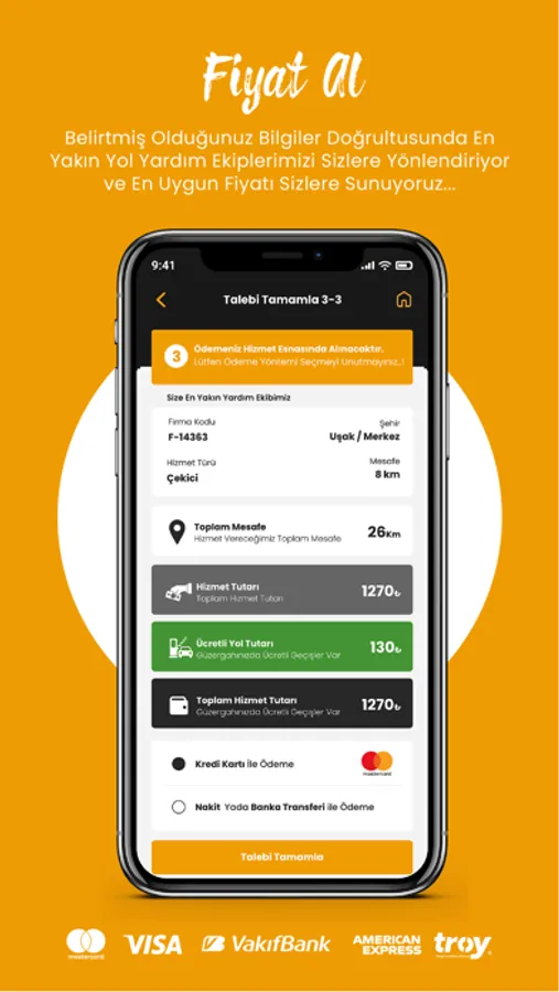 "YOL HİZMETİ" ihtiyaç duyduğunuz anda çekici&vinç, oto arıza, oto elektrik, oto çilingir, yakıt yardım, oto lastik gibi birçok hizmeti tek bir uygulama üzerinden seçmenize ve anlaşmalı iş ortaklarımızla doğrudan uygulama üzerinden iletişime geçerek sürpriz fiyatlarla karşılaşmadan nakit ya da kredi kartı ile ödeme yaparak en kaliteli hizmeti almanızı sağlar.
