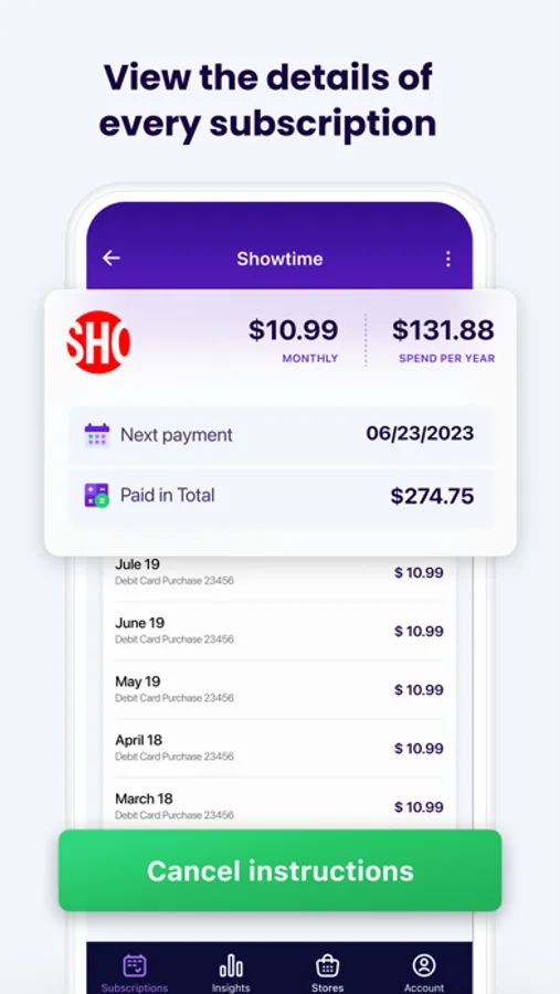 Manage Subscriptions: Keep track of all your subscriptions in one convenient place. Subscription Stopper acts as your personal subscription tracker, giving you a clear overview of your active subscriptions, their costs, and renewal dates. Stay organized and make informed decisions about your subscriptions.