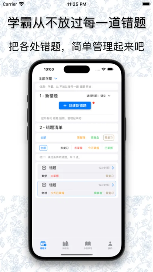 帮你完成错题录入、整理、复习、总结一整套流程的工具,使你掌握学霸相同的学习方法。
