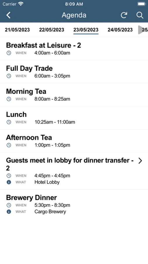 View the schedule and receive notifications on important conference details such as upcoming events, departure times and dress code for your event.