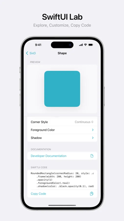 • Explore different SwiftUI components, customize them, and copy the SwiftUI code in SwiftUI Lab.