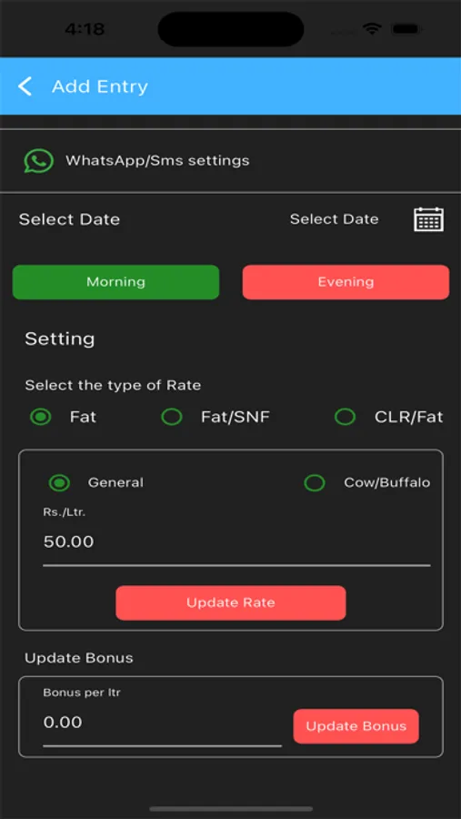 With Meri Dairy Mobile App, you can send and receive daily milk entries via SMS without the internet. For this you can give your permission at the beginning of the app to send SMS via your SIM . Decline if you do not wish to use the SMS service.