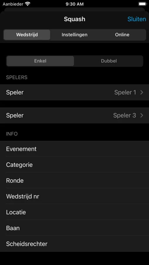App voor bijhouden van squash scores. Geschikt voor gebruik van internationale wedstrijden.