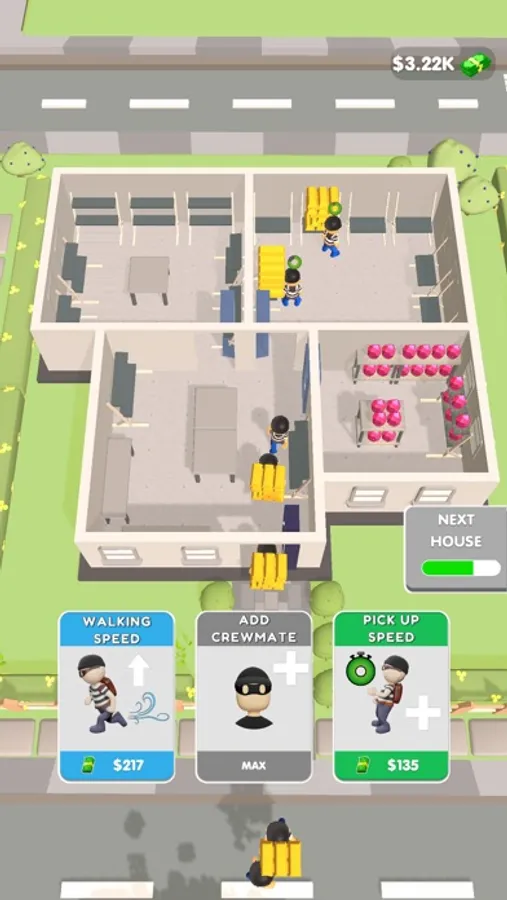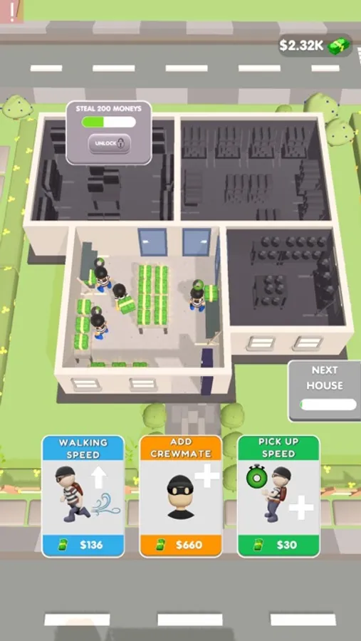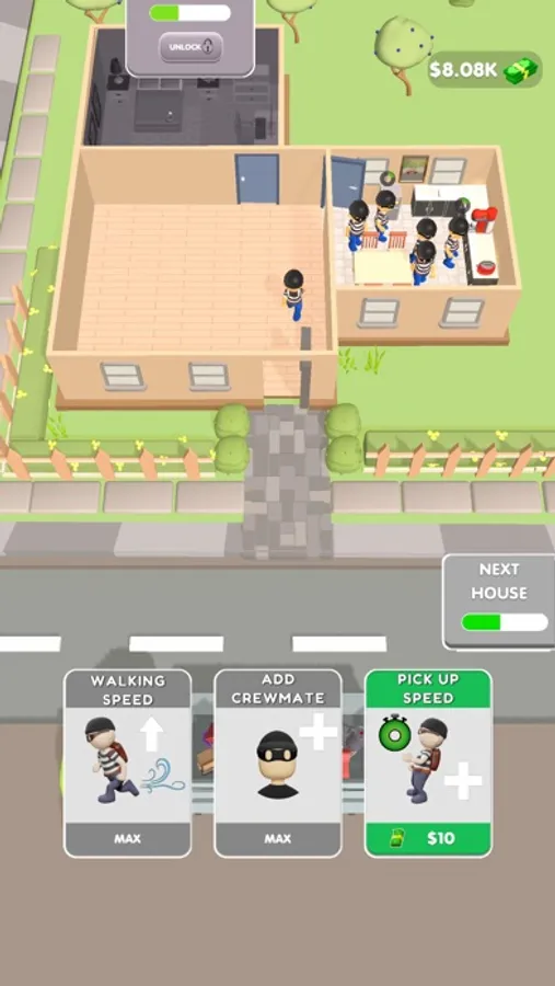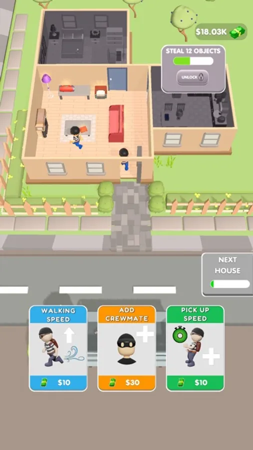 Get ready to become the ultimate thief in our addictive mobile idle game! In our game, you'll assemble a team of skilled thieves and use them to rob houses, collecting valuable items and cash along the way. Upgrade your thieves to increase their speed and efficiency, and use your hard-earned cash to purchase even more powerful upgrades. Your ultimate goal is to rob the entire house and become the top thief in the game. With intuitive gameplay and stunning graphics, our game is the perfect way to satisfy your inner thief. Download now and start your thieving journey!"