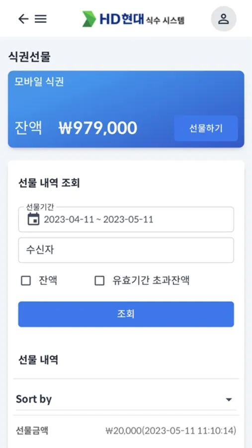 - 제 3자에게 식권 선물 및 미사용 잔액 회수