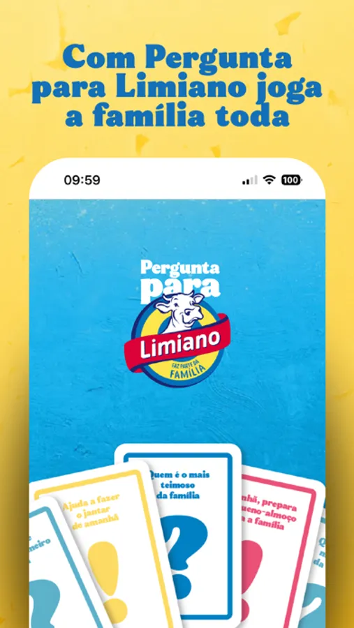 Pergunta para Limiano é um jogo de cartas para toda a família. Reúnem-se os membros da família à volta de uma mesa. À frente de cada um deles, coloca-se um prato com cinco pedaços os fatias de queijo Limiano. No centro, está um dispositivo móvel com a aplicação “Pergunta para Limiano” instalada. O jogo consiste em dois baralhos – Perguntas e Consequências – acessíveis através de um simples toque no ecrã. O número total de cartas é 150 (100 perguntas e 50 consequências). Os familiares podem tirar à sorte quem será o primeiro a jogar mas, como o respeitinho é muito bonito, aconselhamos que seja o elemento mais velho a ter essa honra.