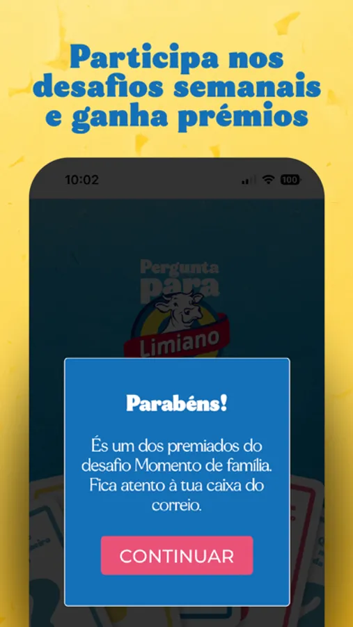 Todas as semanas, “Pergunta para Limiano” tem desafios para ti e para a tua família. Podem ser tarefas como tirar uma foto original, gravar um vídeo nunca visto ou exibir uma prova de compra Limiano. Para os completares, terás de estar atento à aplicação e seguires as instruções. Há dois tipos de recompensa: