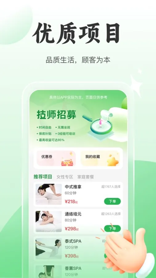 1.正规专业上门服务平台,为您提供绿色按摩服务