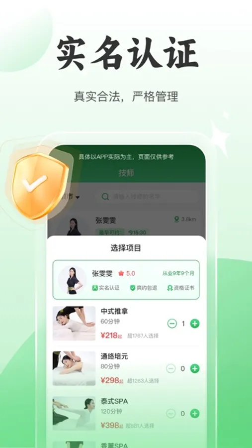 【严格规范】所有上门服务技师实名认证、证书认证、健康认证等,均有多年按摩养生行业服务经验