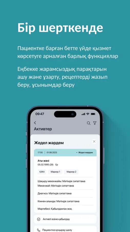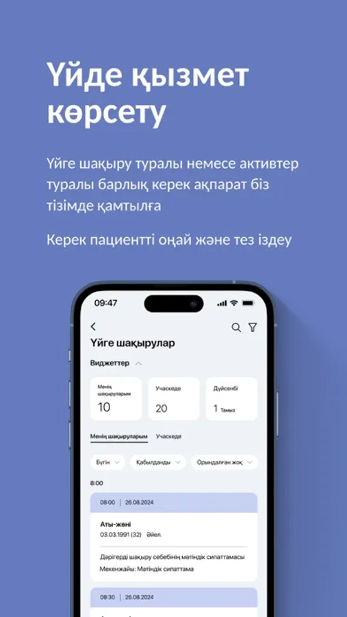 MIS Dаmumed мобильді қосымшасы учаскелік дәрігерлер мен патронаж мейіргерлеріне арналған ыңғайлы жұмыс орны.