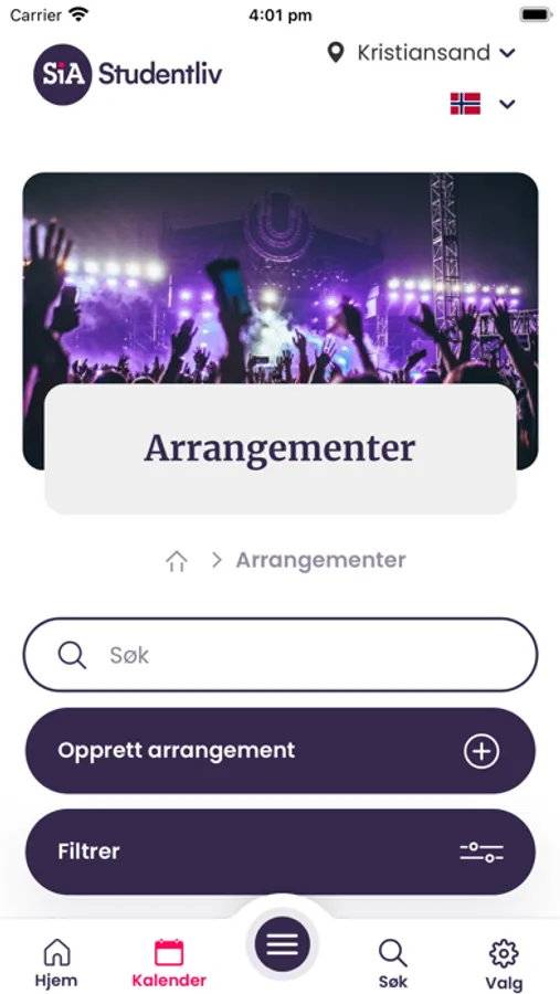 SiA Studentliv er i første omgang en arrangementskalender for studentene på Agder. Her får du oversikt på hva som skjer på studenthusene, aktiviteter i studentforeningene, kurs og tilbud fra SiA og mye mer. SiA Studentliv gir deg også oversikt på gode studentfordeler og tjenester levert fra SiA.