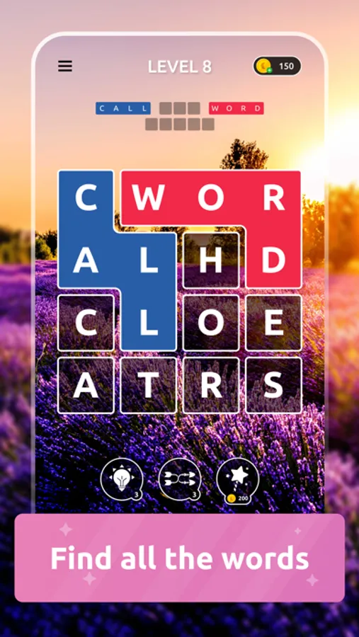 Find words by connecting letters together on the game board and enjoy levels of word search puzzles or fillwords set against picturesque natural landscapes.