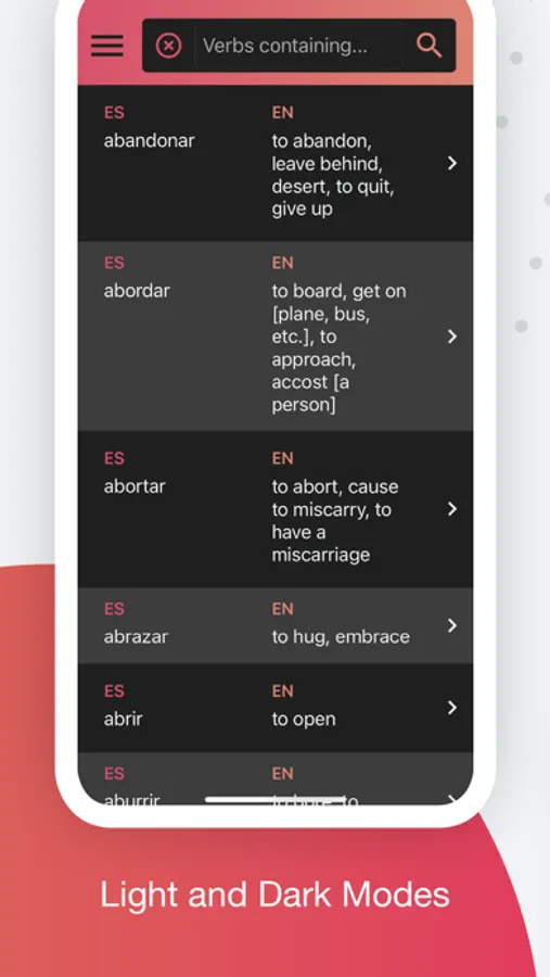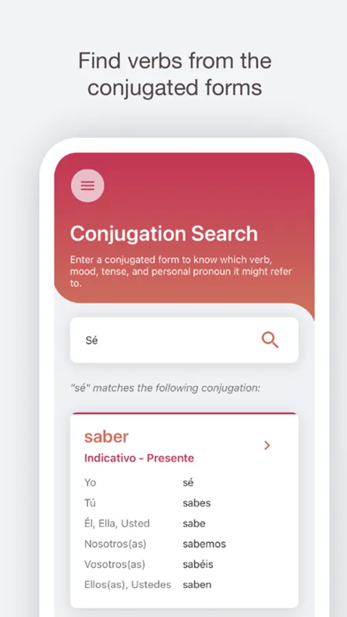 - User-friendly design making the app easy to use and efficient to look for a specific verb or conjugation