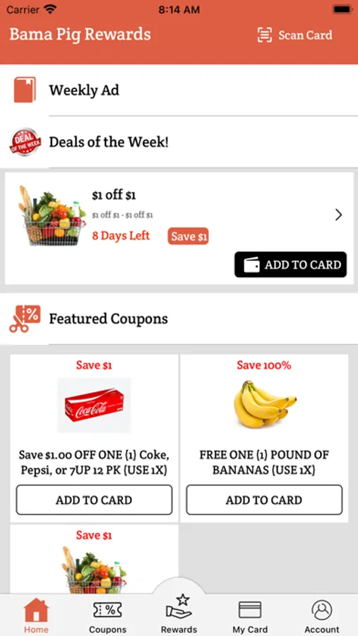 Bama Pig Rewards app is the easiest way for our loyal customers to receive savings and digital coupons every time they shop! The Bama Pig Rewards app brings this all to your device with simply and easy to use features. Enhance your shopping experience with Bama Pig Rewards App following these simple steps.