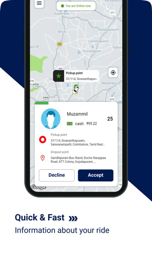 When customer book a ride, booking with riding details will be viewed in your Picka Express Driver APP screen.