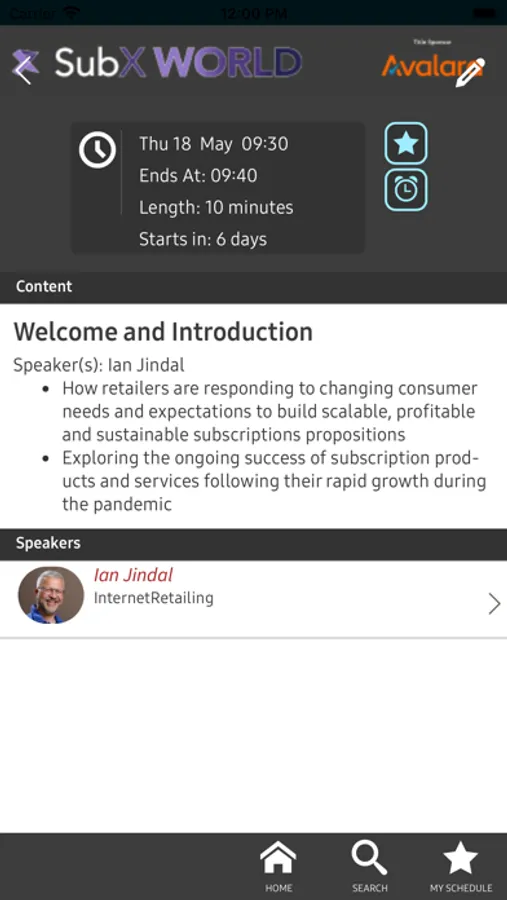 - View the full agenda and related information (event time, room location, speaker info, etc.)