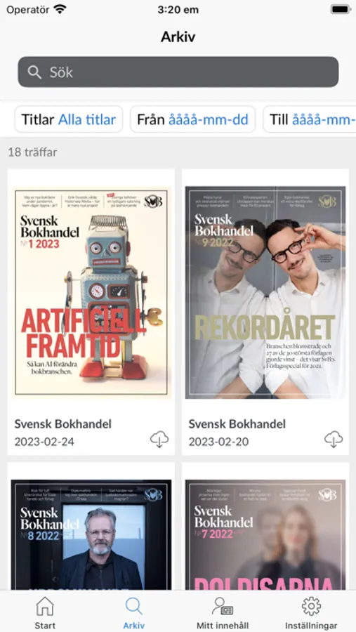 I den här appen bläddrar och läser du den digitala versionen av Svensk Bokhandels papperstidning. Här hittar du reportage, analys och fördjupning om den svenska bokbranschen. Dessutom kan du ta del av de mest kompletta katalogerna över bokutgivningen i Sverige: Vårens-, Sommarens- och Höstens Böcker.