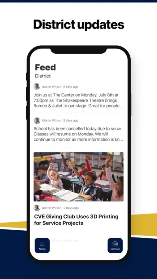 In the Live Feed is where you'll find updates from the administration about what's going on in the district right now. Whether that's celebrating a student's success, or reminding you about an upcoming deadline.