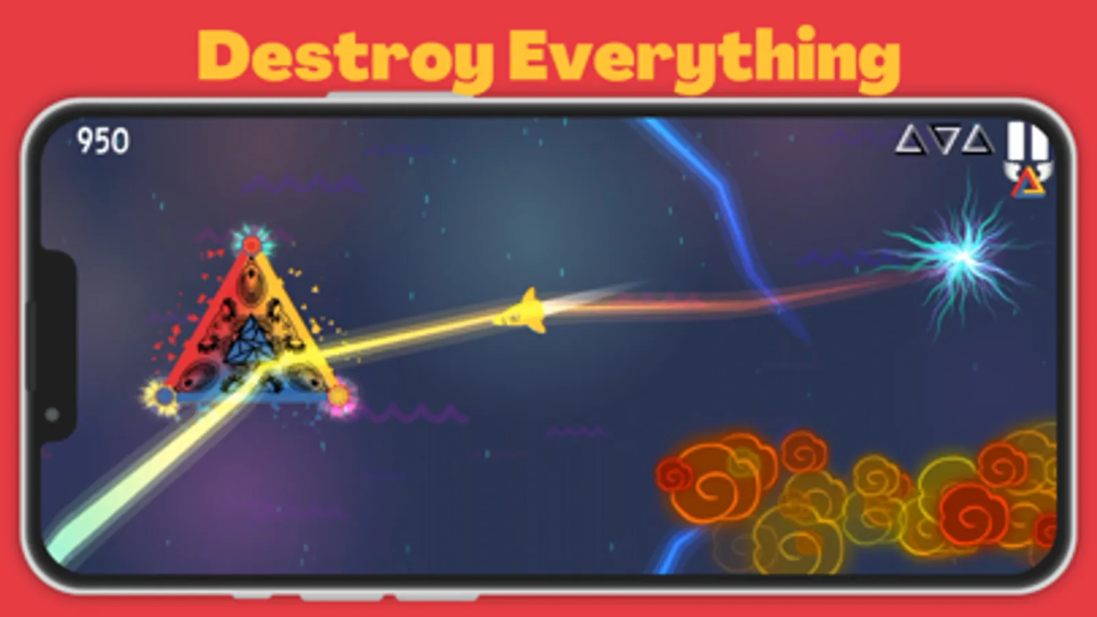 -Rotating Triangle: Rotate and match the color with the side of the triangle to destroy objects.