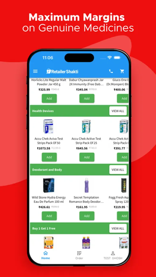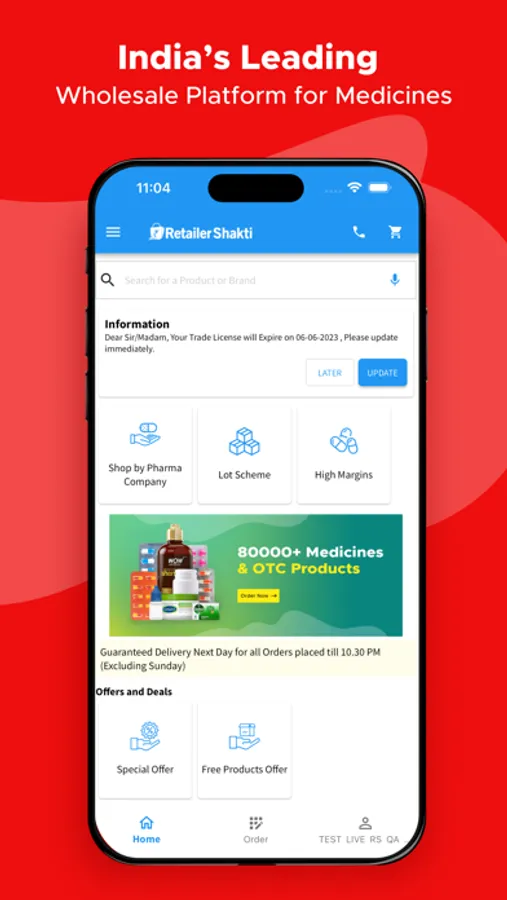 Experience our end to end B2B Pharma e-commerce platform to buy medicines in bulk at best wholesale prices directly through our app and website. RetailerShakti procures products directly from Companies or their authorized delivery hub. We guarantee delivery of 100% Genuine Medicines.