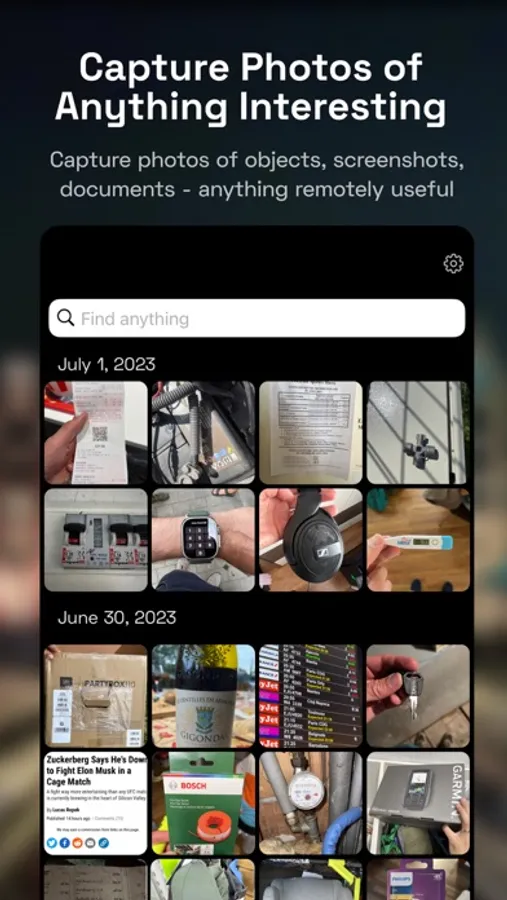 Capture a photo of everything that catches your eye or seems even remotely useful with NeuralBox. From receipts and screenshots to documents, clothes, and product packaging, you now have a dedicated space for everything. NeuralBox efficient storage and state-of-the-art AI search capabilities mean you can capture as much as you want, whenever you want, and effortlessly find everything later.