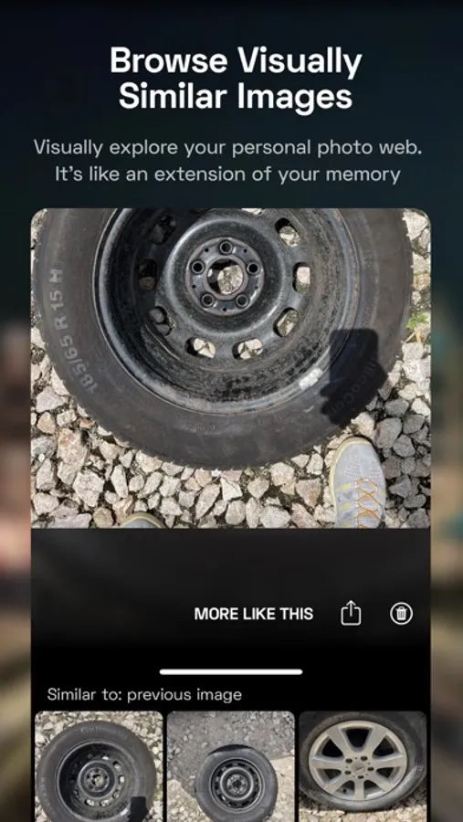 Browse and connect photos in a unique, efficient way with our image similarity feature. Our advanced AI models find other images that are visually similar to the selected one, mirroring the human brain's natural approach to organising information.