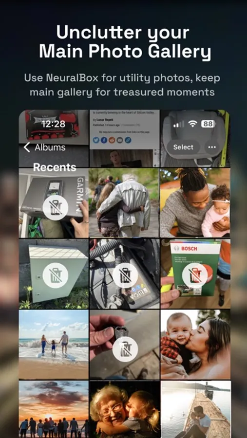 NeuralBox is a unique camera and gallery app created for those random, miscellaneous photos that you accumulate over time. No longer worry about cluttering your primary photo gallery with 'this looks cool' or 'this might be useful later' shots. With NeuralBox, capture as much as you like, whenever something catches your interest.