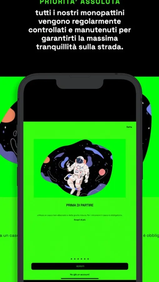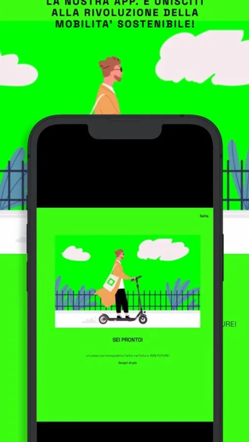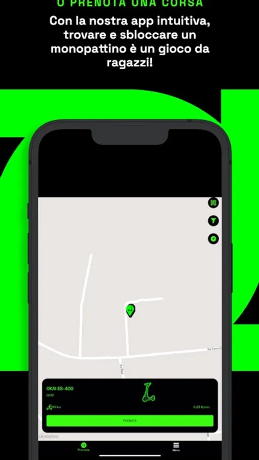 Con la nostra app, potrai noleggiare un monopattino elettrico ovunque tu sia, in modo facile e veloce. Basta aprire l'app, cercare il monopattino più vicino a te e prenotarlo. Una volta arrivati a destinazione, puoi parcheggiare il tuo monopattino in una zona designata e concludere la tua prenotazione.
