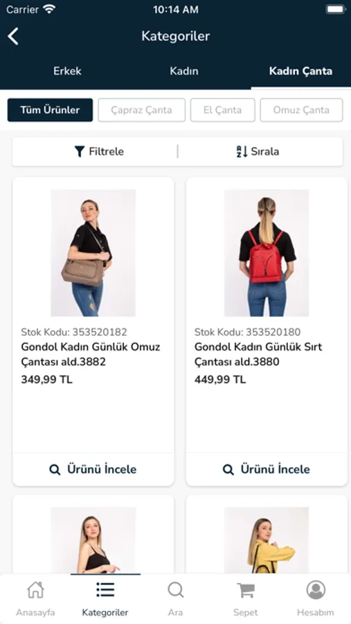 * Ürün kategorilerinde filtreleme yapabilirsiniz