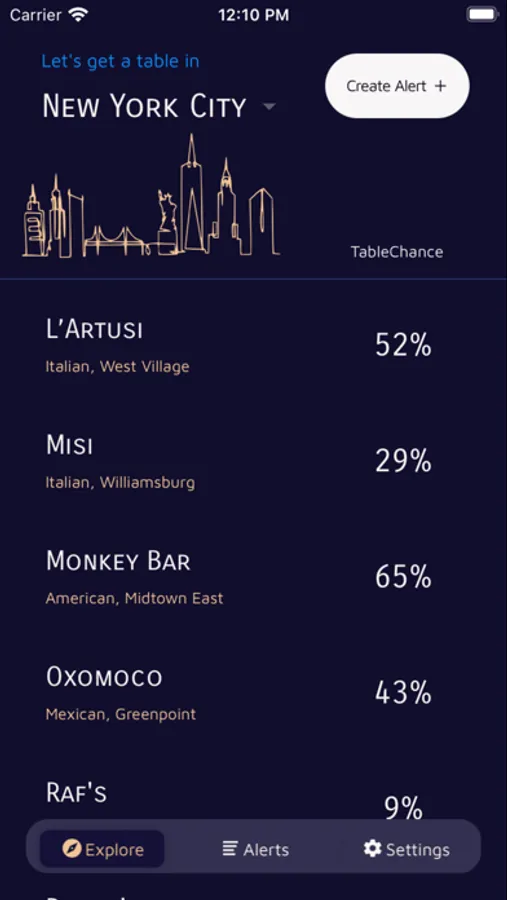 Create alerts for NYC's best restaurants, and get notified in real-time when reservations become available.