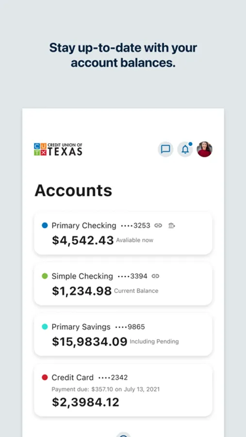 Bank securely on the go with the Credit Union of Texas Business mobile banking application. View statements, transfer money, pay bills. Monitor your account; see account summary and details including balances and transaction history, set alerts, and more!