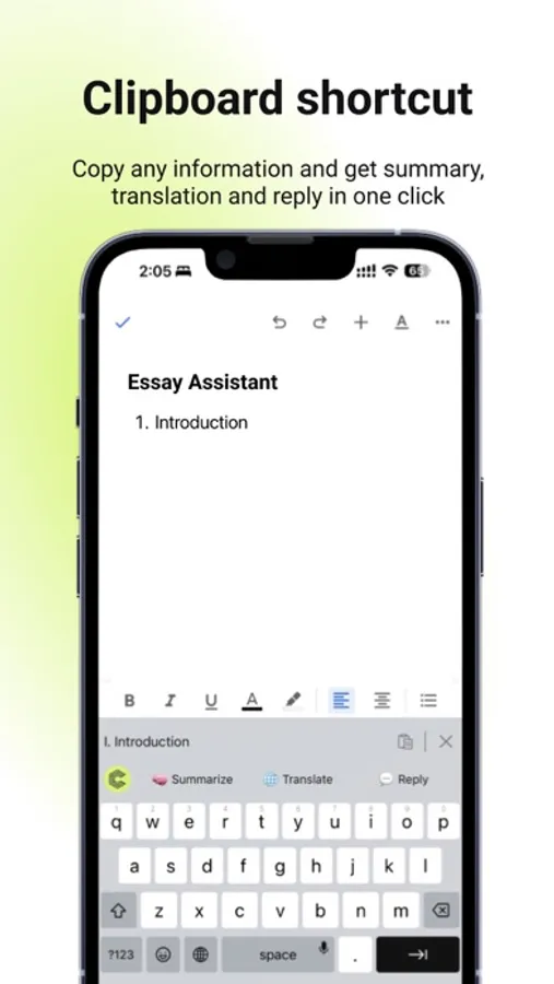 2. Clipboard shortcut: After copying text, you can easily summarize, translate, or reply to it with just one click.