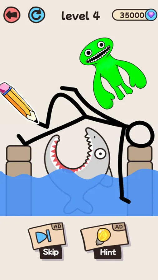 Draw lines to protect the banban monster from being hurt. Different enemies have different ways of attacking, remember to adjust your lines. You can draw interesting patterns to complete the level.