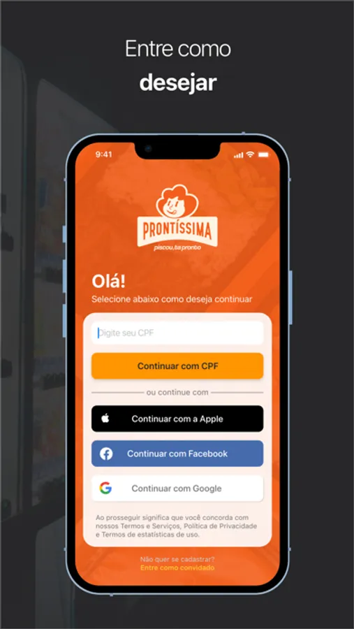 É só se cadastrar, escolher sua comida ou bebida e pronto.