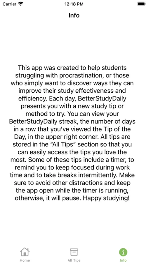 Discover ways to improve your study effectiveness and efficiency with a new study tip or method each day. Struggling to stay focused on your work? Want to ace your next exam? Designed for students hoping to improve their study habits, you can use BetterStudyDaily to help combat procrastination, improve academic performance, and improve the quality of your next study session, one day at a time.