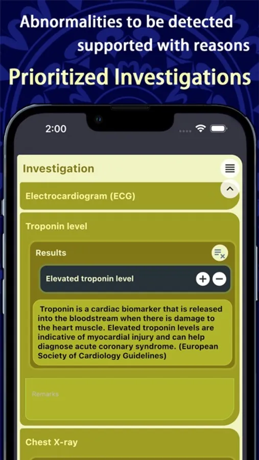 Prioritized investigations: medAiLOG prioritizes the most important investigations to be done specifically for your case, with reasons supported by widely adopted guidelines and textbooks.