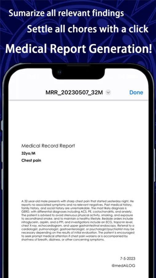 Are you a medical professional looking to streamline your practice? Look no further than medAiLOG - the ultimate AI-powered app for taking a comprehensive medical history, conducting a focused physical exam, prioritizing investigations, and looking up relevant information regarding differential diagnosis and management: