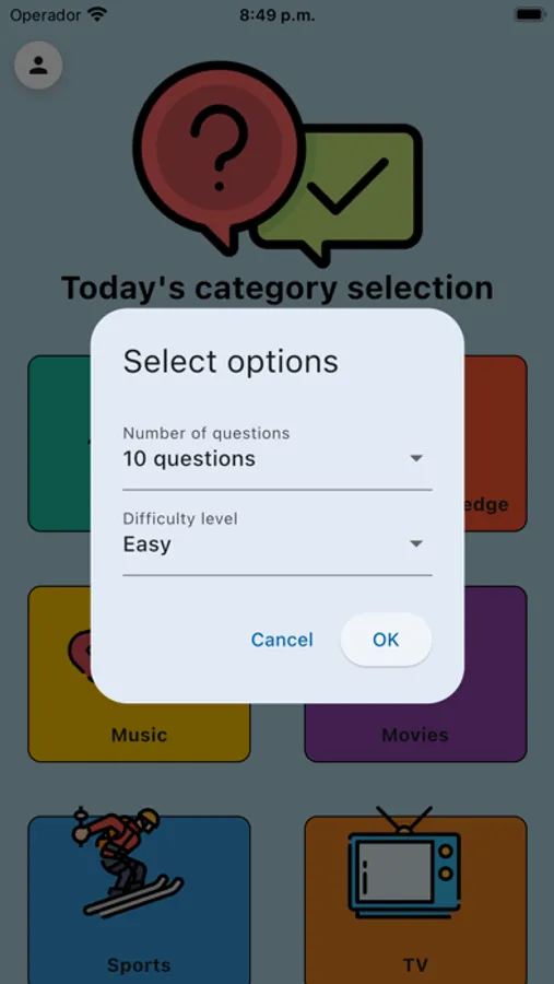 Select the category, the number of questions, and the difficulty level. You have statistics for correct and incorrect answers. Improve and learn with Questioner.
